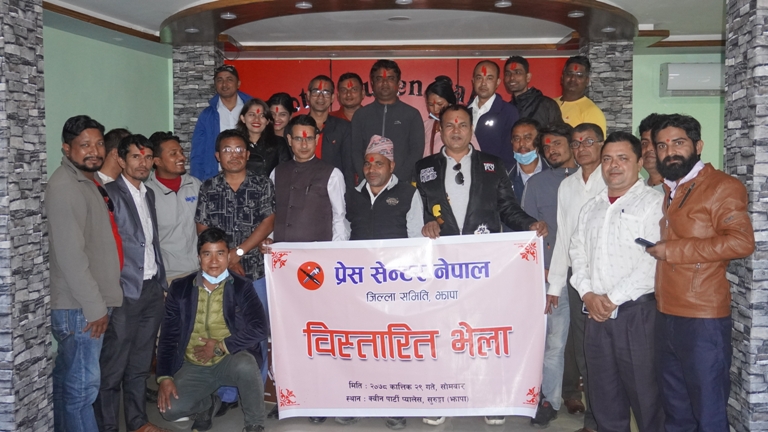 सुरुङ्गा । प्रेस सेन्टर नेपाल झापाको विस्तारित भेलाले अध्यक्षमा पुनः झुलन रेग्मीलाई चयन गरेको छ । सोमबार झापाको सुरुङ्गामा भएको भेलाले उपाध्यक्षमा पार्थ मण्डल र महिला उपाध्यक्षमा सुश्मा कुमाल, सचिवमा उद्धव पुरी, सह–सचिवमा प्रकाश उप्रेती, समावेशी सह–सचिवमा सन्तोष शर्मा र कोषाध्यक्षमा पुष्प खड्कालाई चयन गरेको छ ।
