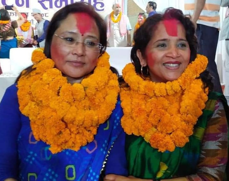 निर्वाचित भए पछि महासंघका उपाध्यक्षद्वय शान्ता बाँस्कोटा र शोभा गुरुङ ।