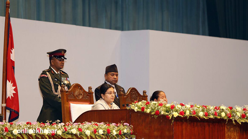 काठमाण्डौ, जेठ १० । सरकारले नीति तथा कार्यक्रम सार्वजनिक गरिरहेको छ । आज दुबै सङ्घीय संसदलाई सम्बोधन गर्दै राष्ट्रपति विद्यादेवी भण्डारीले सरकारका प्राथमिकताहरू सार्वजनिक गरिरहनुभएको छ । राष्ट्रपति भण्डारीले नीति तथा कार्यक्रम सार्वजनिक गर्दै प्रधानमन्त्री रोजगार कार्यक्रम पुर्नसरचना गर्ने जानकारी दिनुभयो ।