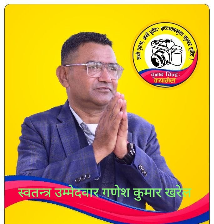 विभिन्न राजनितिक दलका उम्मेद्वारकोबीचमा फरक परिचय स्थापित गर्दै झापा १ मा स्वतन्त्र उम्मेद्वार गणेश कुमार खरेल पनि चुनावी अभियानमा हुनुहुन्छ । निडर र हक्की स्वभावका खरेल नेकपा एमालेको कार्यकर्ताको पृष्ठभुमिबाट उदाएको युवा नेता हुनुहुन्छ । फोहोरको डङ्गुरले तिरस्कारमा परेको काकरभिट्टास्थीत देवकोटा पार्कलाई आजको सुन्दर पार्कको रुपमा रुपान्तरण गर्ने अभियानको नेतृत्व गर्नु भएका खरेल वर्तमानमा पुर्वकै धार्मिक तथा पर्यटकीय गन्तव्यका रुपमा रहेको पतालगंगा धार्मिक तथा सांस्कृतिक प्रवर्धन समितिको अध्यक्ष हुनुहुन्छ । खरेलले जिम्मेवारी सम्हाले पछि पतालगंगा क्षेत्रमा सुधारका थुप्रै प्रयास समेत थाल्नु भएको छ । क्यामेरा चुनाव चिन्ह लिएर मतदाता माझ पुगिरहनु भएका खरेल मेचीनगर ८ निवासी हुनुहुन्छ ।