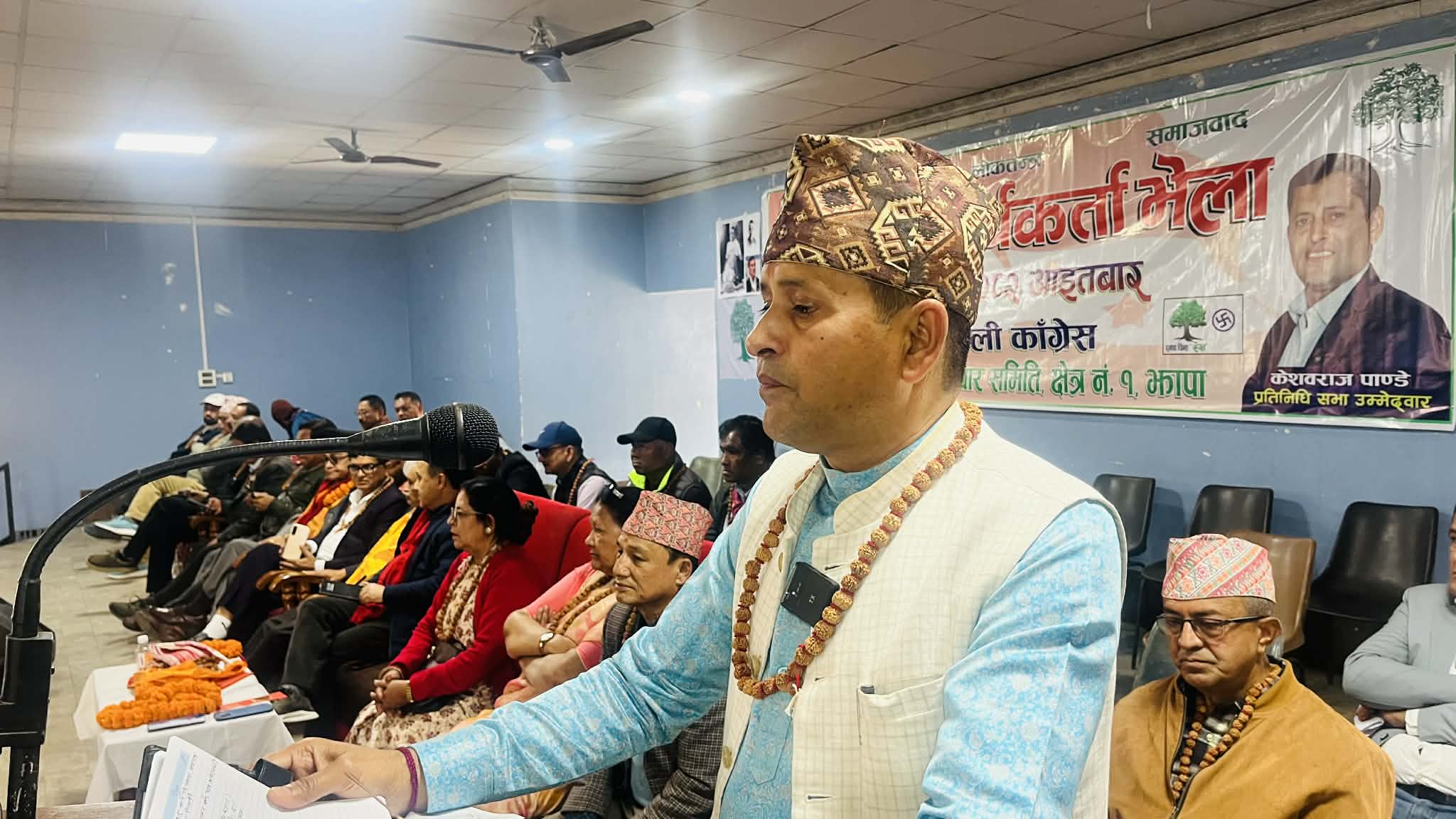 धुलाबारीस्थीत टाउन हलमा सम्पन्न कार्यकर्ता भेलामा बोल्दै झापा १ का काँग्रेस उम्मेद्वार केशबराज पाण्डेले यस क्षेत्रका हरेक नागरिकका लागि समान रुपमा काम गर्ने प्रतिबद्धता जनाउनु भयो ।