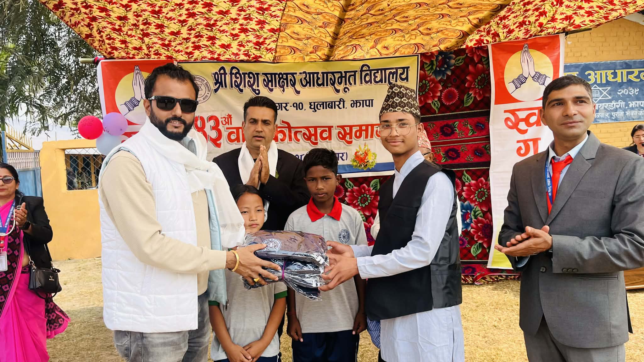 धुलाबारी, माघ २३ । झापा मेचीनगर १० स्थीत शिशु साक्षर आधारभुत विद्यालयले ४३ औं वार्षिक उत्सव मनाएको छ । बिहिबार एक कार्यक्रमको आयोजना गरी बार्षिक उत्सव समारोह सम्पन्न गरेको हो । विद्यालय व्यवस्थापन समितिका अध्यक्ष मनोज घिमिरेको सभापतित्व तथा मेचीनगर १० का वडाअध्यक्ष नारायण खनालको प्रमुख आतिथ्यतामा सम्पन्न बार्षिकोत्सव सामरोहकाबीच दाताहरुले विद्यालयलाई आवश्यक पर्ने विभिन्न शैक्षिक सामग्री हस्तान्तरण समेत गरिएको थियो ।